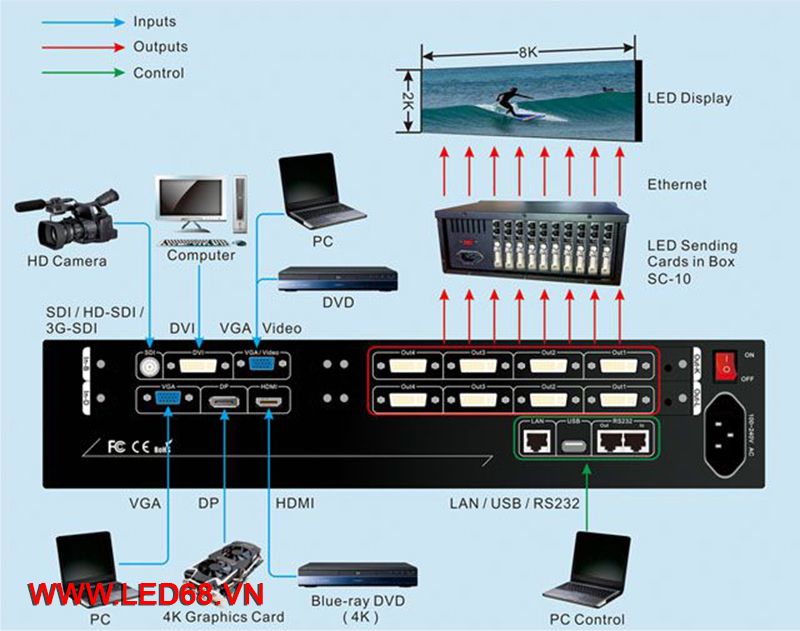 - Bạn muốn chỉnh các hiệu ứng màu của hình ảnh cần hiển thị trên màn hình LED cần có một thiết bị đủ tính năng để thực hiện.