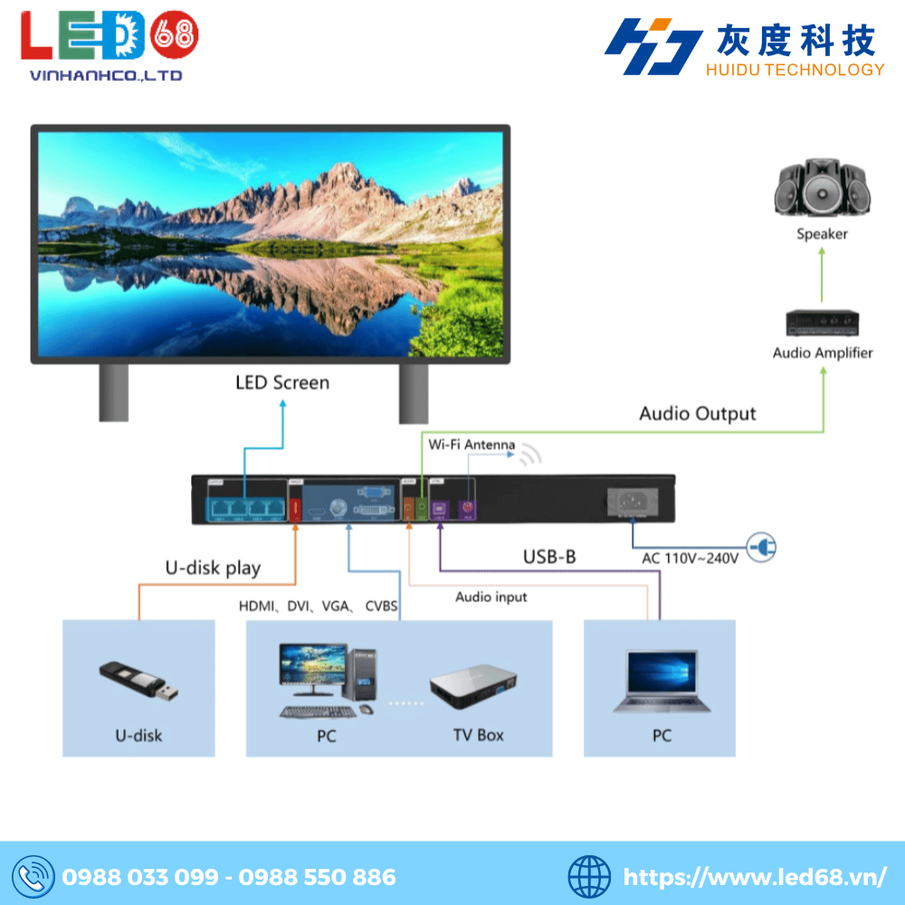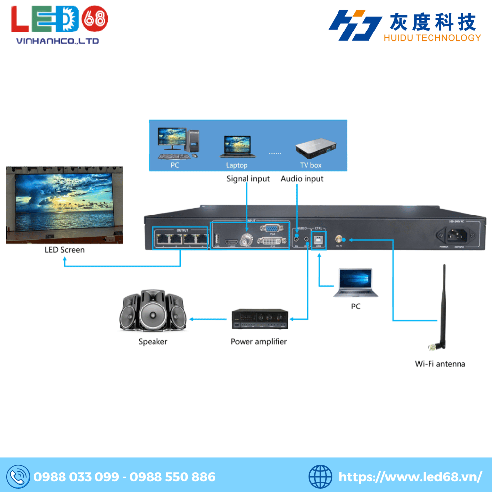 Sơ đồ kết nối - ứng dụng của bộ xử lý hình ảnh Huidu HD-VP410A
