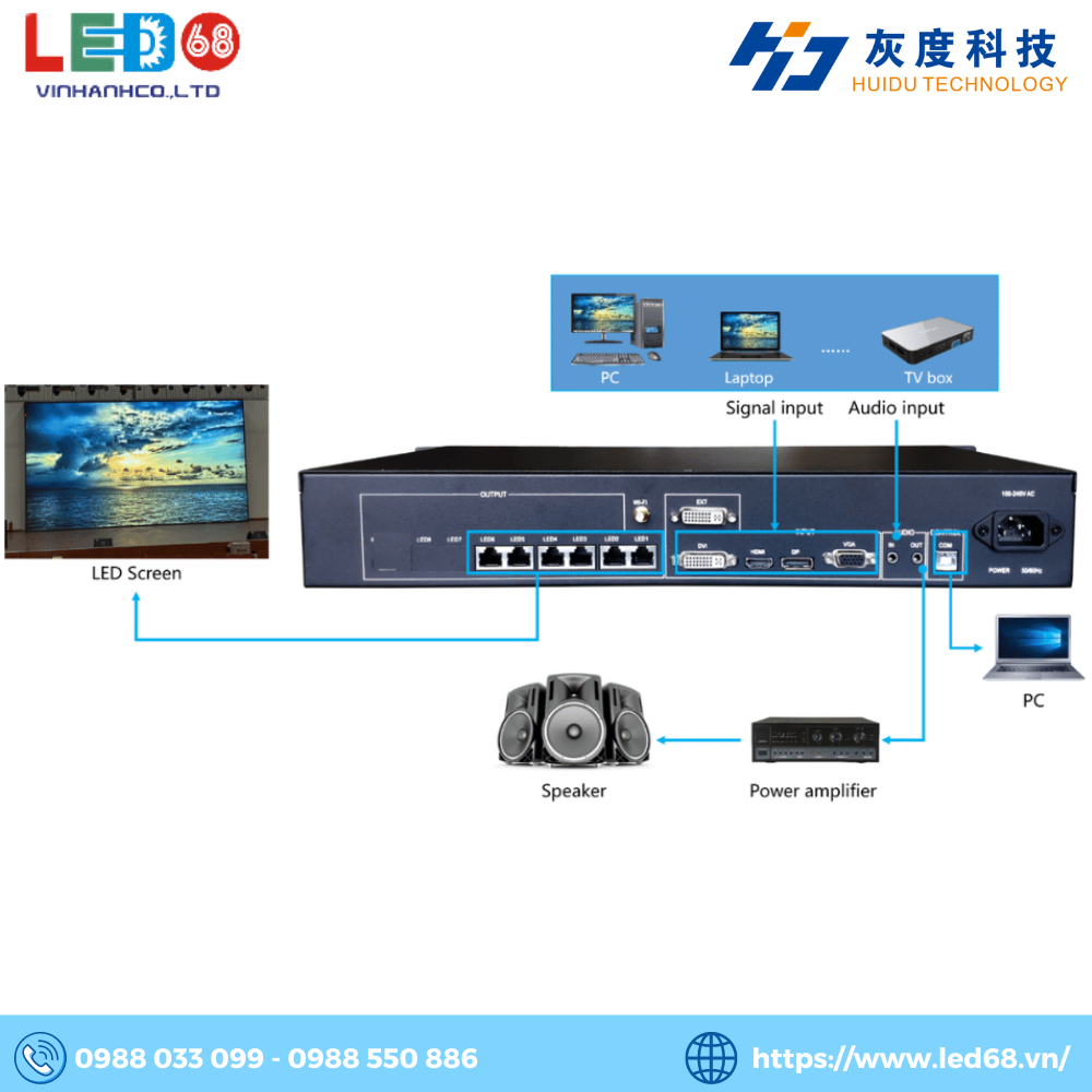 Hãy liên hệ ngay với LED68 để được tư vấn chi tiết và sở hữu bộ xử lý hình ảnh HD VP620 chính hãng, giúp nâng cao hiệu suất trình chiếu cho màn hình LED của bạn