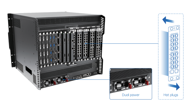 Các cổng cắm nóng cho đầu vào và đầu ra và các chức năng phục hồi dữ liệu thông minh cung cấp sự an toàn, ổn định và vận hành thuận tiện. Một mô-đun nguồn dự phòng công nghiệp đảm bảo hoạt động ổn định trong suốt ứng dụng của bạn.