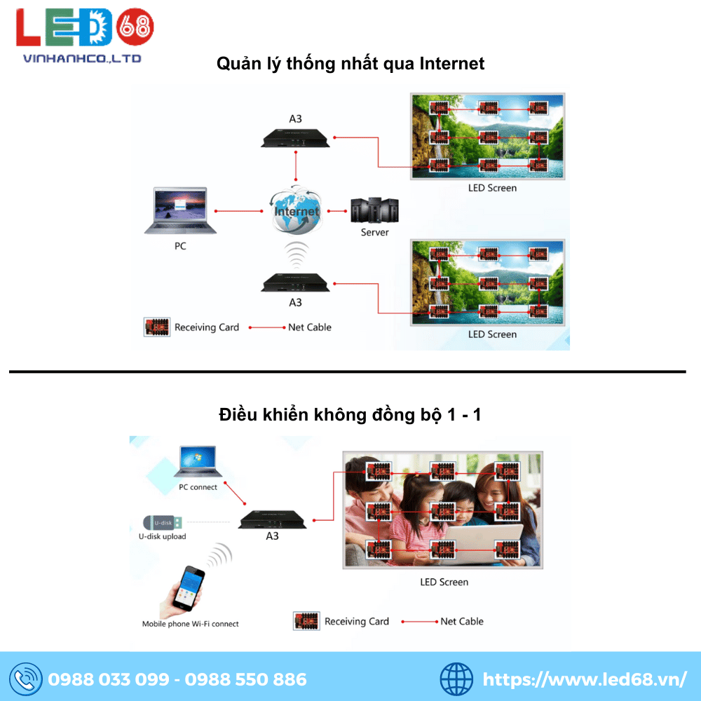 - Quản lý thống nhất của nhiều màn hình LED thông qua Internet hoặc LAN.