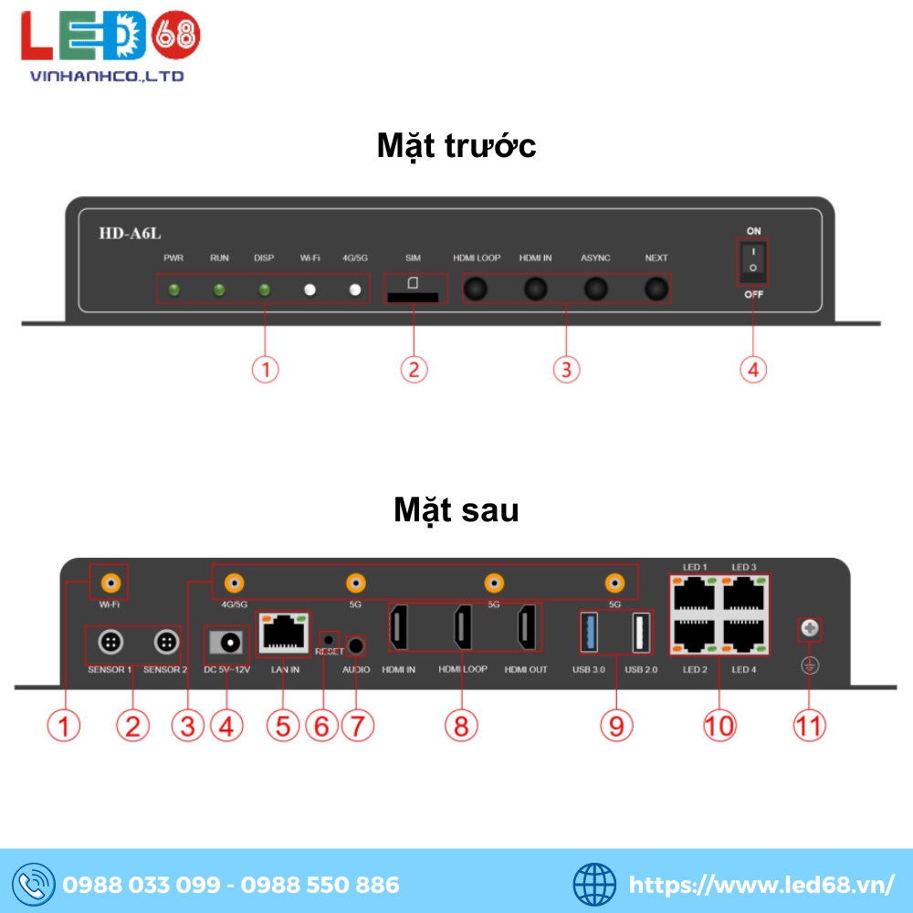 Phía trên là một số thông tin về BOX HD A6L. Để được tư vấn thêm cũng như để sở hữu BOX HD A6L chính hãng (CO, CQ đầy đủ), hãy liên hệ ngay cho LED68 theo thông tin dưới đây:
