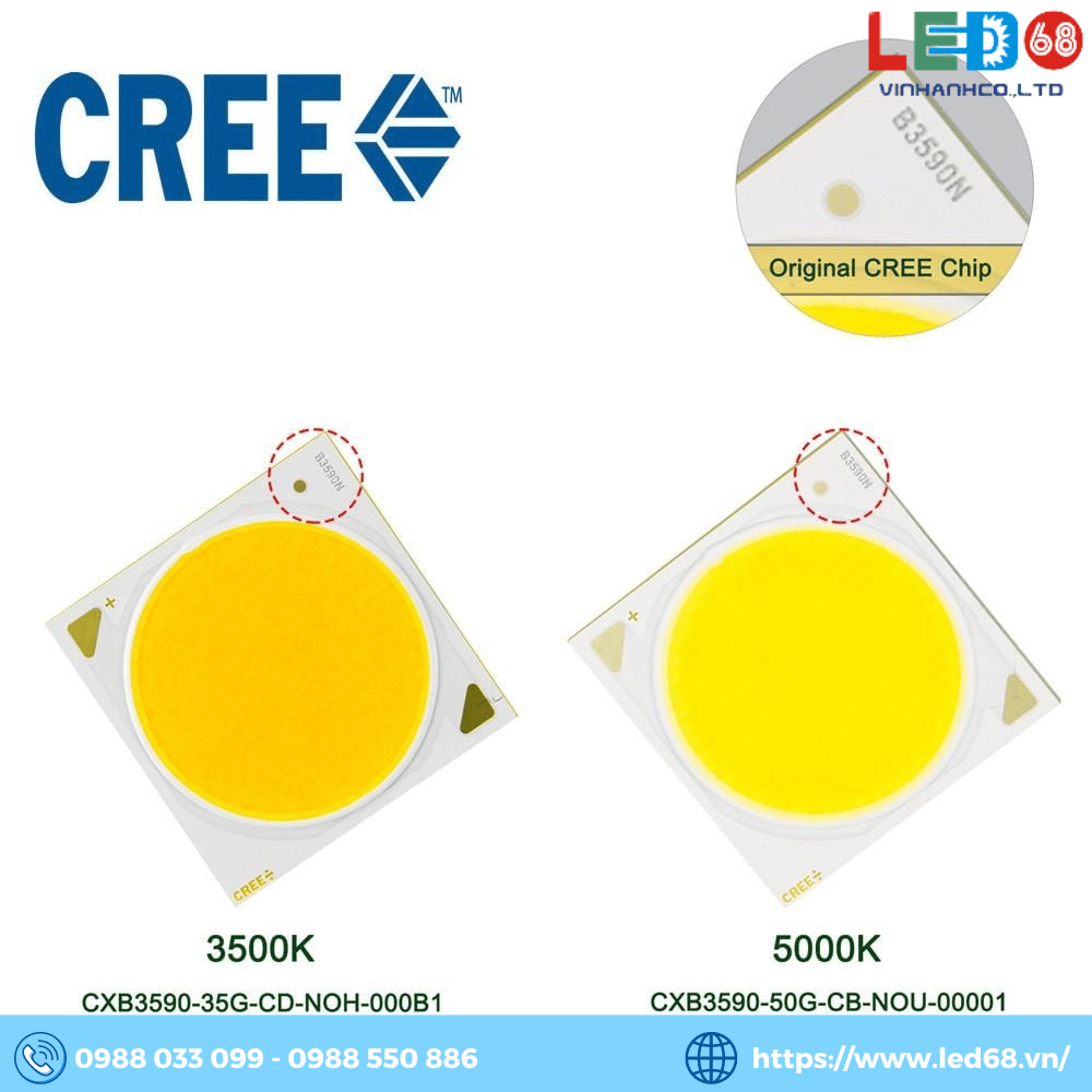 Nhiệt độ màu: Cree cung cấp chip LED với nhiều lựa chọn về nhiệt độ màu, từ 2700K đến 6500K. Điều này cho phép sử dụng trong nhiều ứng dụng khác nhau, từ chiếu sáng nội thất ấm áp đến ánh sáng trắng lạnh cho các ứng dụng công nghiệp.