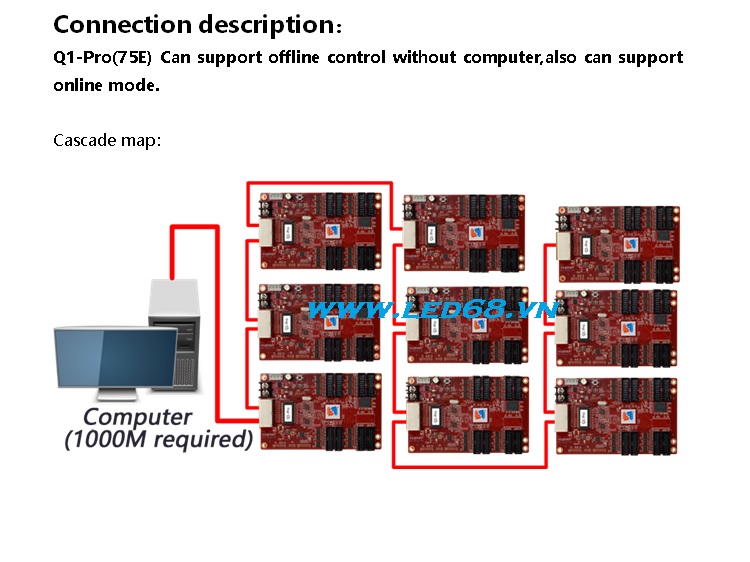 - Hỗ trợ điều khiển màn hình có kích thước lớn đến siêu lớn nhờ chế độ cascade, không cần Card phát (Sending card)