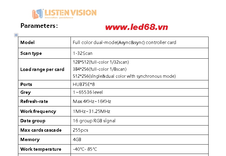 - Có thể điều khiển các loại module full color trong nhà và ngoài trời