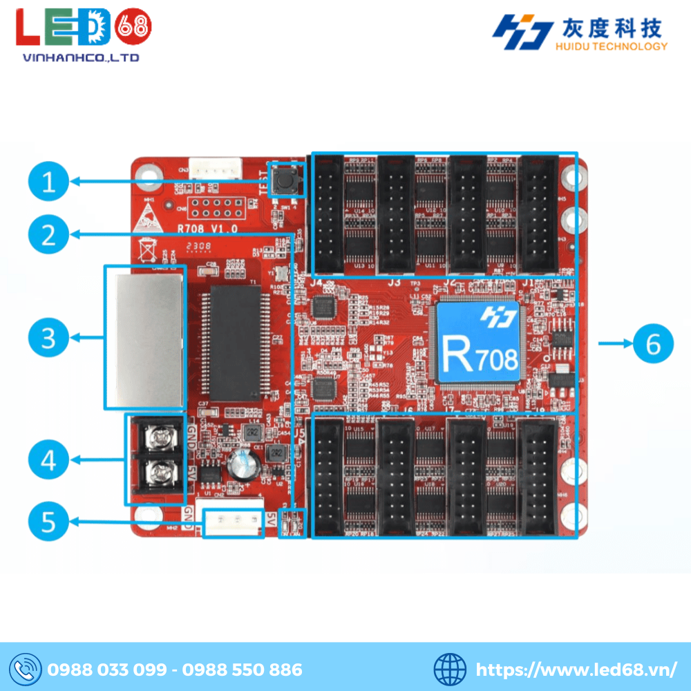 LED68 - Nhà phân phối card thu Huidu HD R708 chính hãng