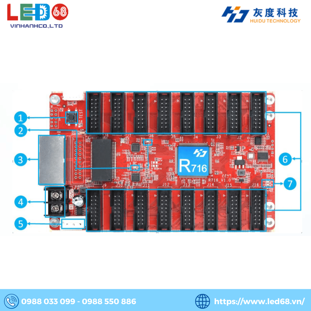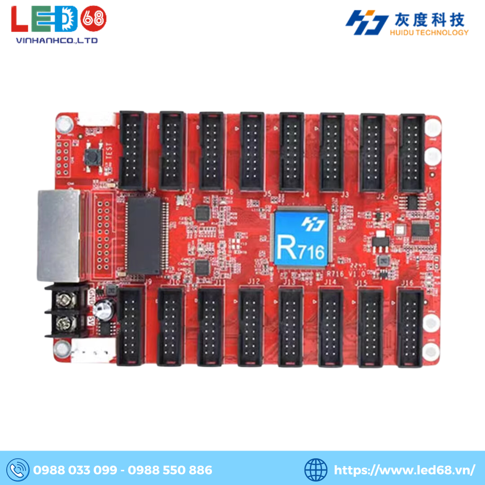 Card thu Huidu HD-R716 là một sản phẩm kỹ thuật cao cấp, được thiết kế để tối ưu hóa việc điều khiển và hiển thị các màn hình LED với độ phân giải cao. Đây là thiết bị không thể thiếu trong các hệ thống màn hình LED, bao gồm màn hình quảng cáo, màn hình sân khấu, và các ứng dụng hiển thị lớn khác. Với khả năng xử lý mạnh mẽ và các tính năng tiên tiến, HD-R716 đáp ứng được các yêu cầu khắt khe nhất của thị trường hiện nay. Dưới đây là chi tiết sản phẩm