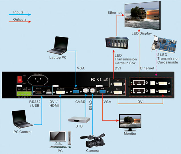 - Bộ xử lý video LED LS-VP4000E , có 5 kênh đầu vào video, 3 kênh đầu ra video.Có thể được sử dụng rộng rãi trong kỹ thuật, hiệu suất cho thuê màn hình LED , màn hình LED hỗn hợp (khoảng cách khác nhau) nhà hát sân khấu lớn màn hình và triển lãm .
