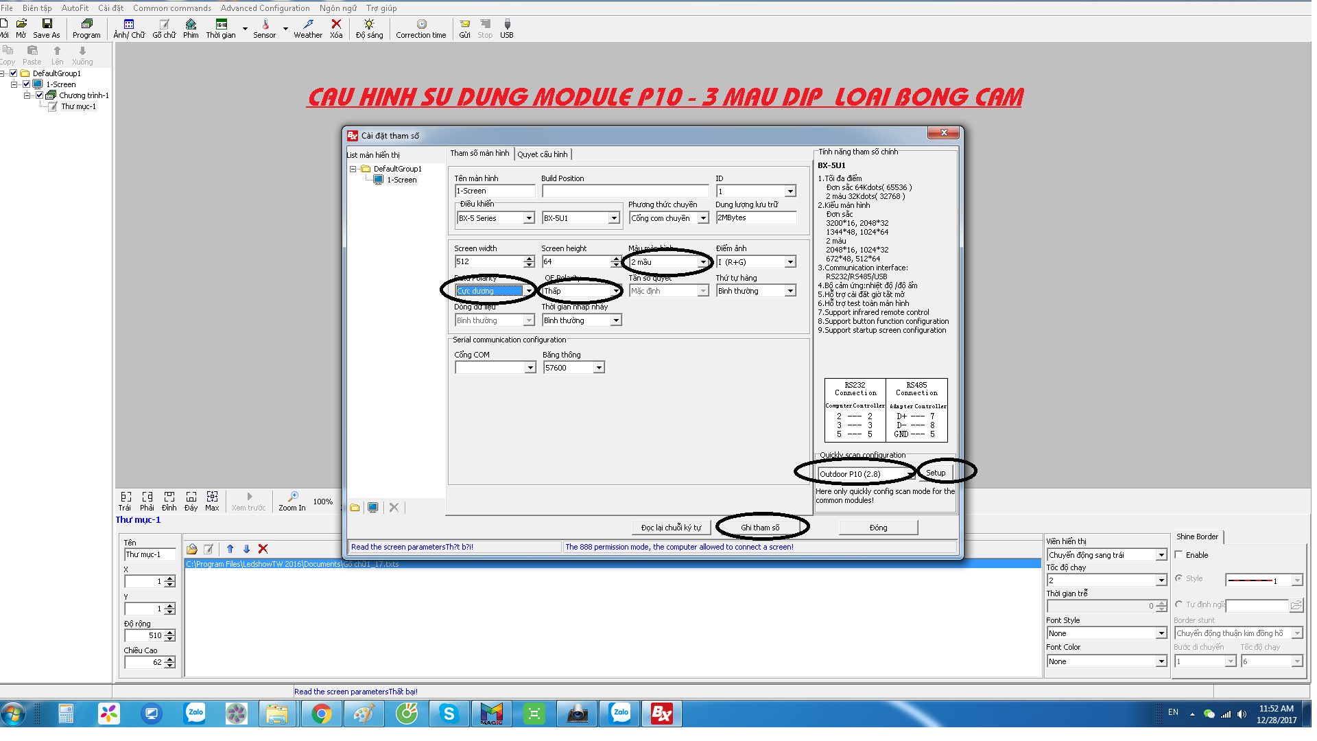 Nếu P10 3 mầu RD thì Trong ô Data Polarity chọn Cực Dương còn ô OE Polarity chọn Thấp