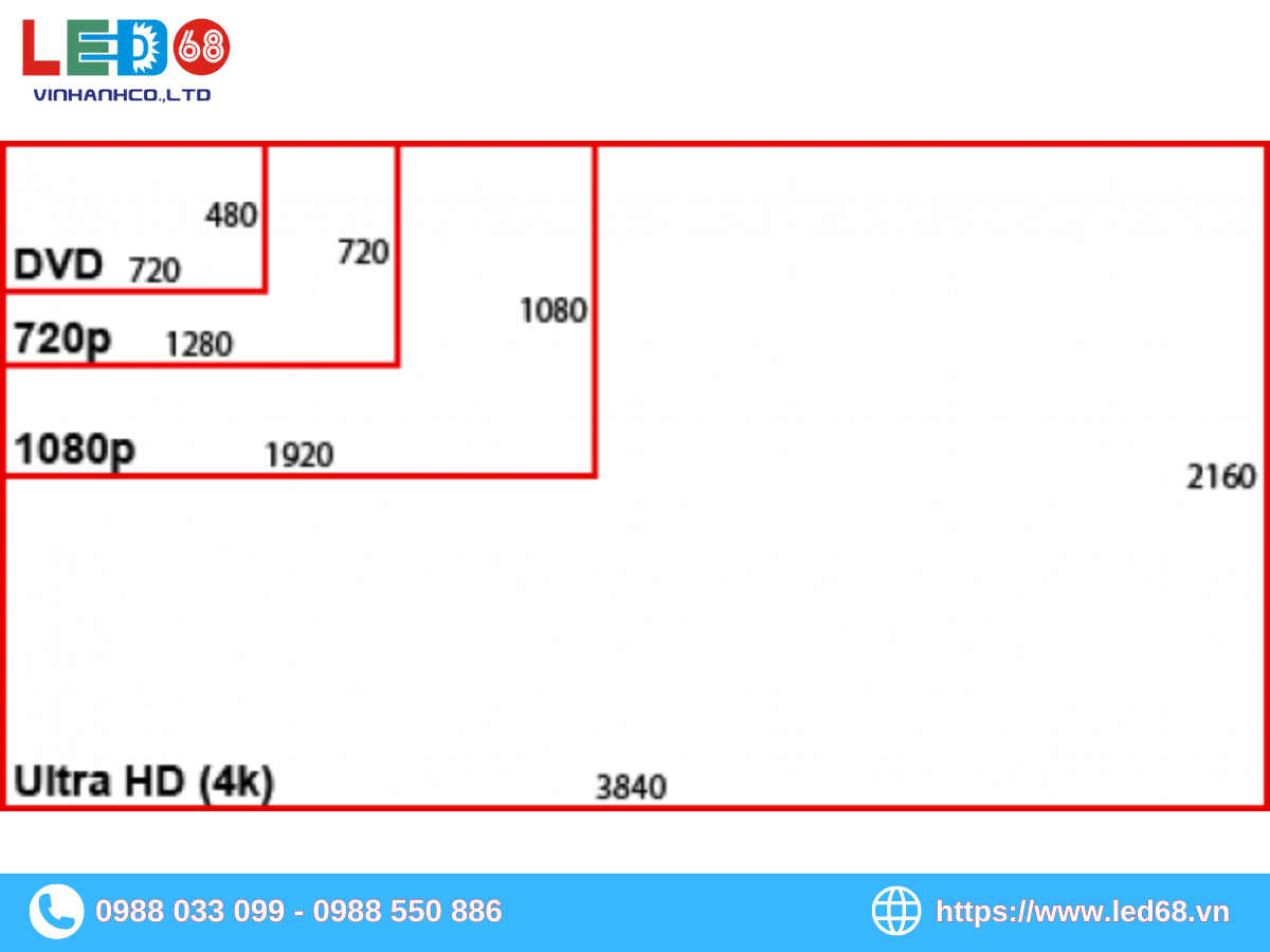 Độ phân giải màn hình quyết định số lượng điểm ảnh hiển thị, ảnh hưởng trực tiếp đến kích thước của màn hình LED. Một số độ phân giải phổ biến: