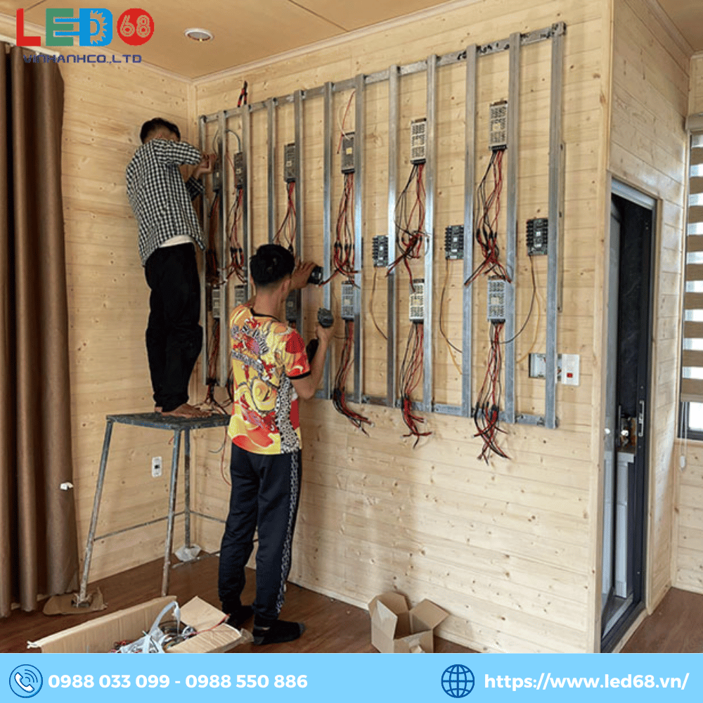 - Lắp đặt aptomat phục vụ màn hình LED. Sử dụng ống gen cho những đường dây nổi để đảm bảo an toàn và tăng tính thẩm mỹ.