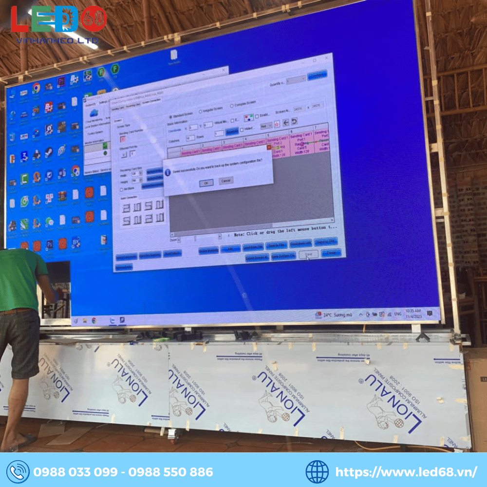 - Cài đặt bộ xử lý với các thông số về độ phân giải, kích thước màn hình, độ sáng tối của màn hình LED.