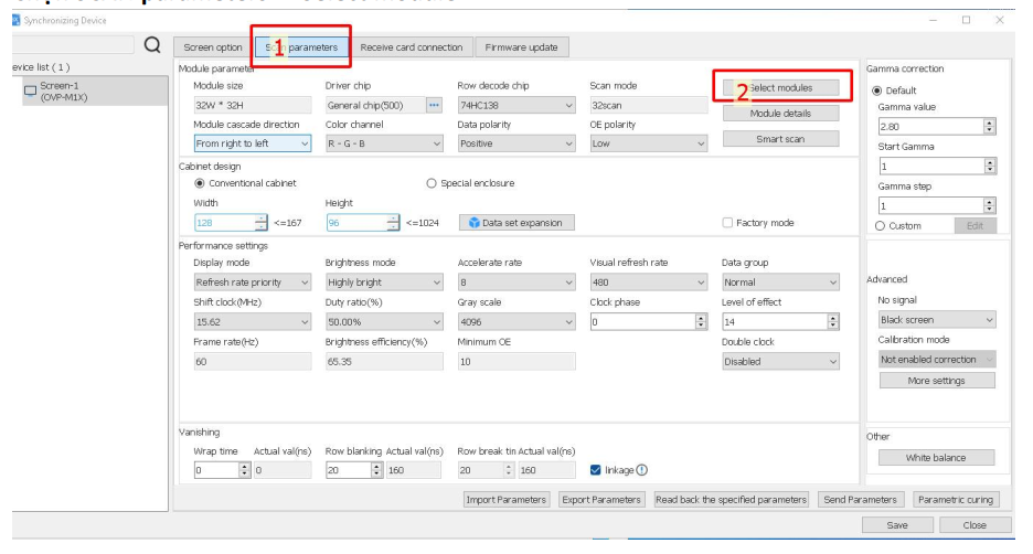 - Chọn tab "Scan parameters", sau đó chọn "Select Modules"