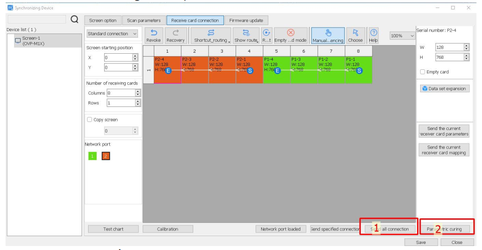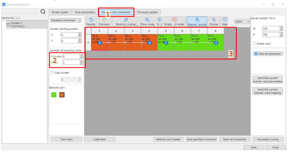 - Nhập số lượng card thu tại ô number of receiving cards (trong hình minh họa là rộng 8, cao 1)