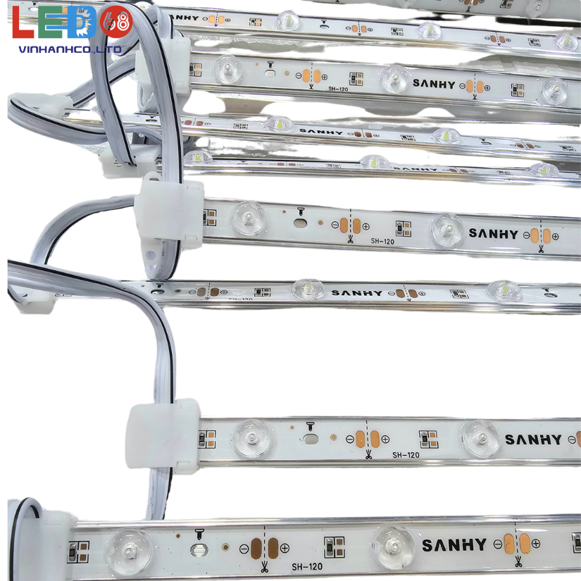 - Các bóng led được bọc bởi nhựa chống nước giúp ánh sáng tỏa đều không để lộ các việt sáng. Làm cho biển hiệu, hộp đèn có ánh sáng đẹp rực rỡ và bắt mắt nhất.