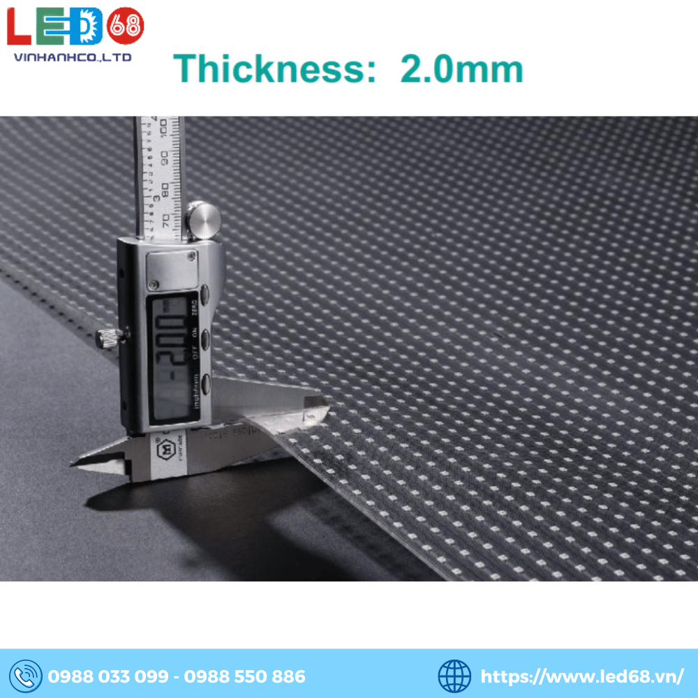 Độ dày chỉ 2mm và trọng lượng chỉ 1.3kg, cấu tạo và vật liệu đặc biệt giúp giảm độ dày của màn hình xuống còn 2mm và trọng lượng nhẹ, làm cho sản phẩm dễ dàng tích hợp vào các thiết kế kiến trúc hiện đại mà không làm ảnh hưởng đến thẩm mỹ tổng thể.