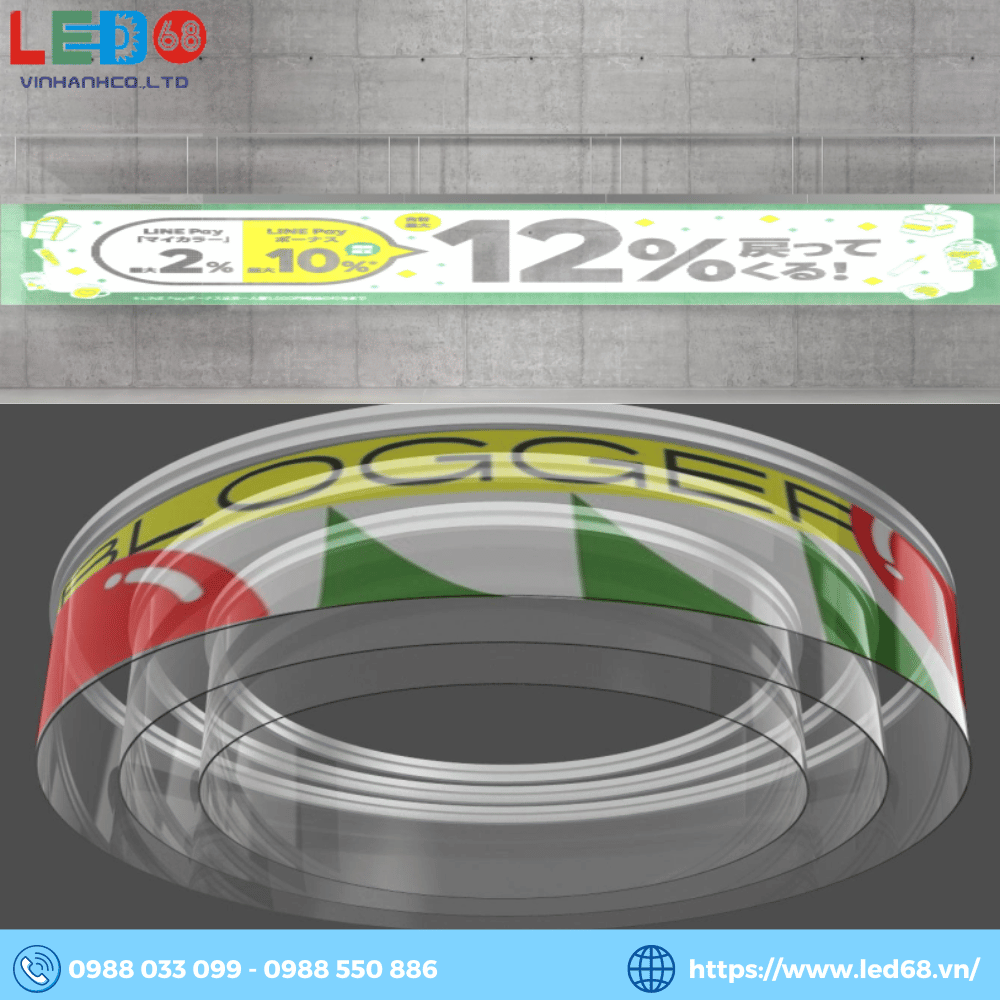Màn hình LED trong suốt dán kính mỏng (hay màn led dán kính) là dòng màn hình LED dán trực tiếp (LED Film), phù hợp với những bề mặt kính cong. Sản phẩm này nổi bật với nhiều tính năng ưu việt như độ trong suốt cao, khả năng uốn cong đa hướng, và thiết kế siêu mỏng, giúp mang lại giải pháp hiển thị sáng tạo và hiệu quả cho mọi không gian kiến trúc và quảng cáo. Dưới đây là chi tiết sản phẩm.