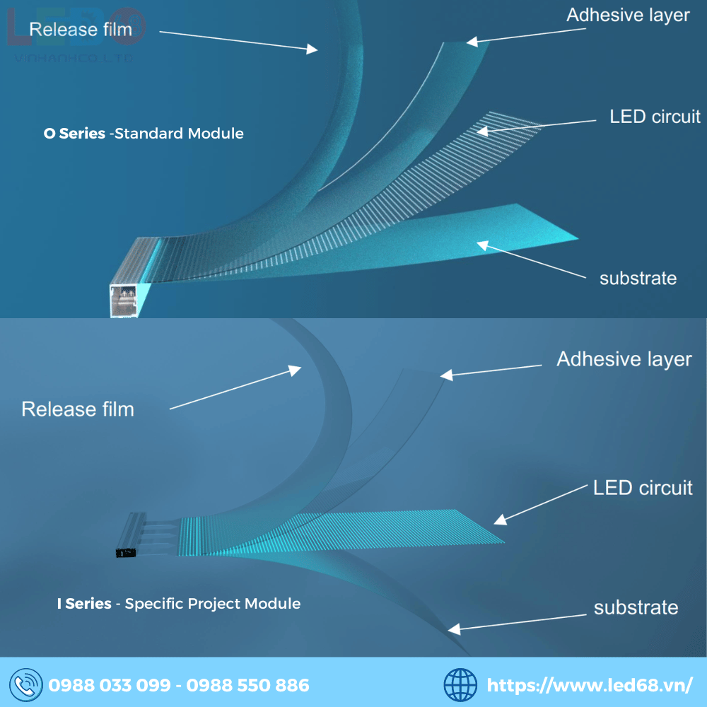 Hình ảnh bóc tách module LED trong suốt dán kính