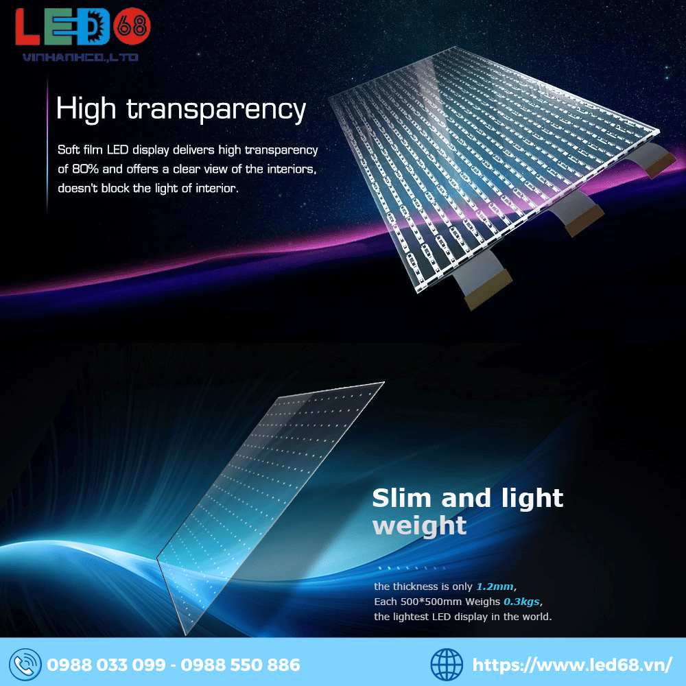 Màn hình LED trong suốt tường kính là sự kết hợp hoàn hảo giữa công nghệ và nghệ thuật, mang lại những giá trị thẩm mỹ và ứng dụng vượt trội. Với những ưu điểm nổi bật như độ trong suốt cao, độ mỏng ấn tượng, khả năng uốn cong đa hướng, và bảo vệ sức khỏe người dùng, sản phẩm này chắc chắn sẽ là lựa chọn hàng đầu cho các không gian thương mại, văn phòng, công cộng, và kiến trúc.