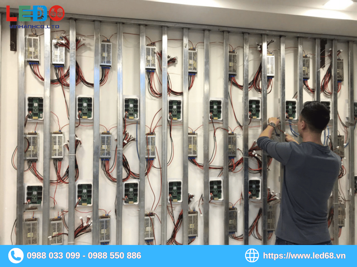 Quá trình thi công và lắp đặt tại LED68 luôn được thực hiện chuyên nghiệp, với các bước kiểm tra kỹ lưỡng và đảm bảo sự chính xác trong từng mối nối, điện áp, và cấu hình phần mềm. Việc lắp đặt được thực hiện theo đúng tiêu chuẩn kỹ thuật, giúp màn hình hoạt động ổn định và đạt hiệu suất tối ưu.