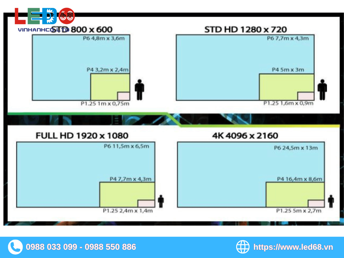 | 16:9 | Video, hội nghị, sân khấu | Hình ảnh rõ nét, phổ biến, chuẩn HD |