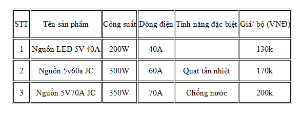Bảng thông tin và báo giá bộ nguồn LED JC power