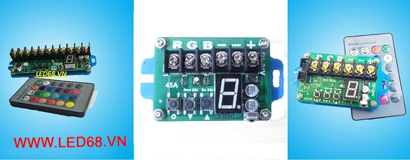 Mạch điều khiển LED RGB là tuyệt chiêu trang trí bằng ánh sáng tuyệt vời nhất cho biển quảng cáo, nội thất quán hát,… Mạch cho phép điều khiển nhiều bóng LED đúc 3 màu RGB với những hiệu ứng cực đẹp. Khách hàng muốn mua mạch điều khiển LED RGB lần đầu tiên chắc chắn sẽ rất bỡ ngỡ trước hàng trăm sản phẩm trên thị trường. Để giúp bạn đọc chọn được những mạch LED chính hãng với giá rẻ mà đem lại hiệu quả cao. LED68 xin giới thiệu 3 sản phẩm mạch điều khiển LED 7 màu ( RGB) giá rẻ mà lại cực tốt nhé.